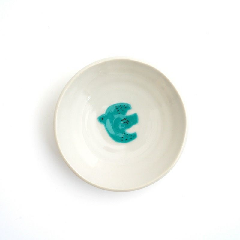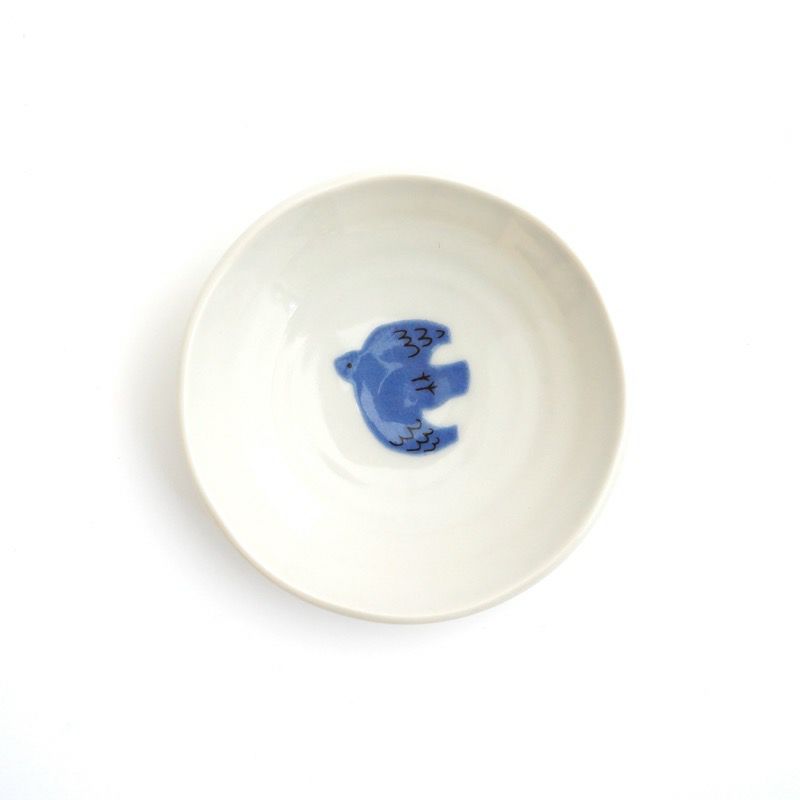 陶器ならではのやさしい白さの粉引に、藍色の染花のアクセント。粉引独特の風合いがあたたかみをもたせ、くっきりとした白と染花の藍色が食卓を明るくします。