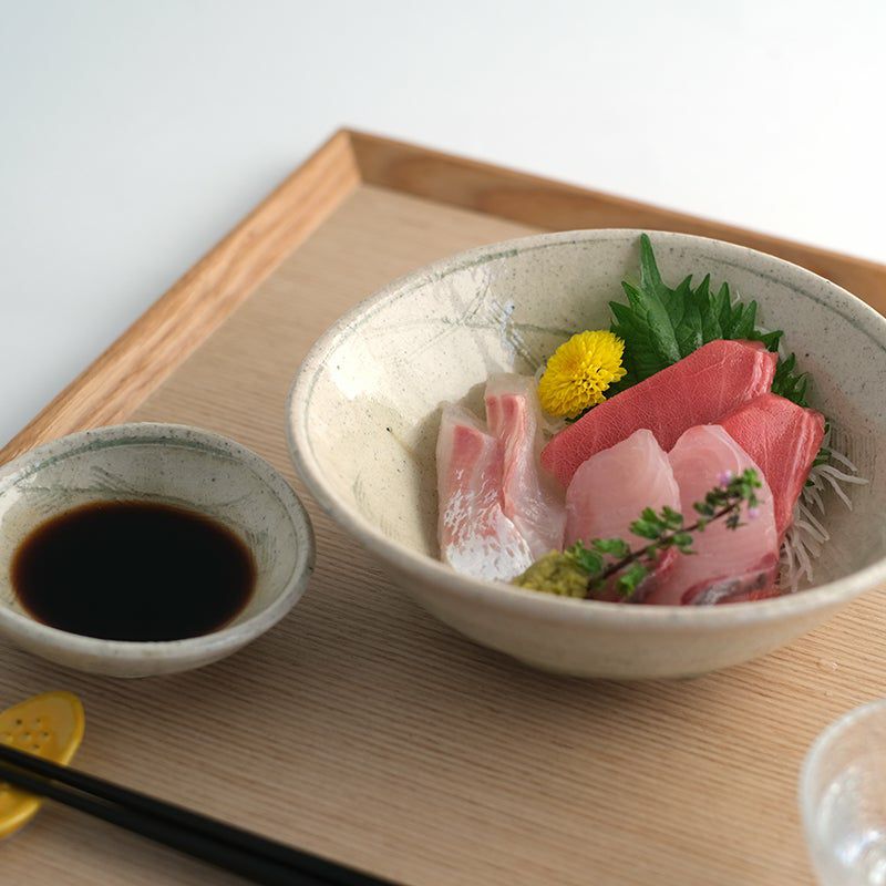 たち吉の器のあるべき思いと、作り手の思いを同じくする器 灰釉草文シリーズ。その思いと、灰釉は、その自然な美しさが器のルーツともいわれることから、270周年を機に復刻いたしました。