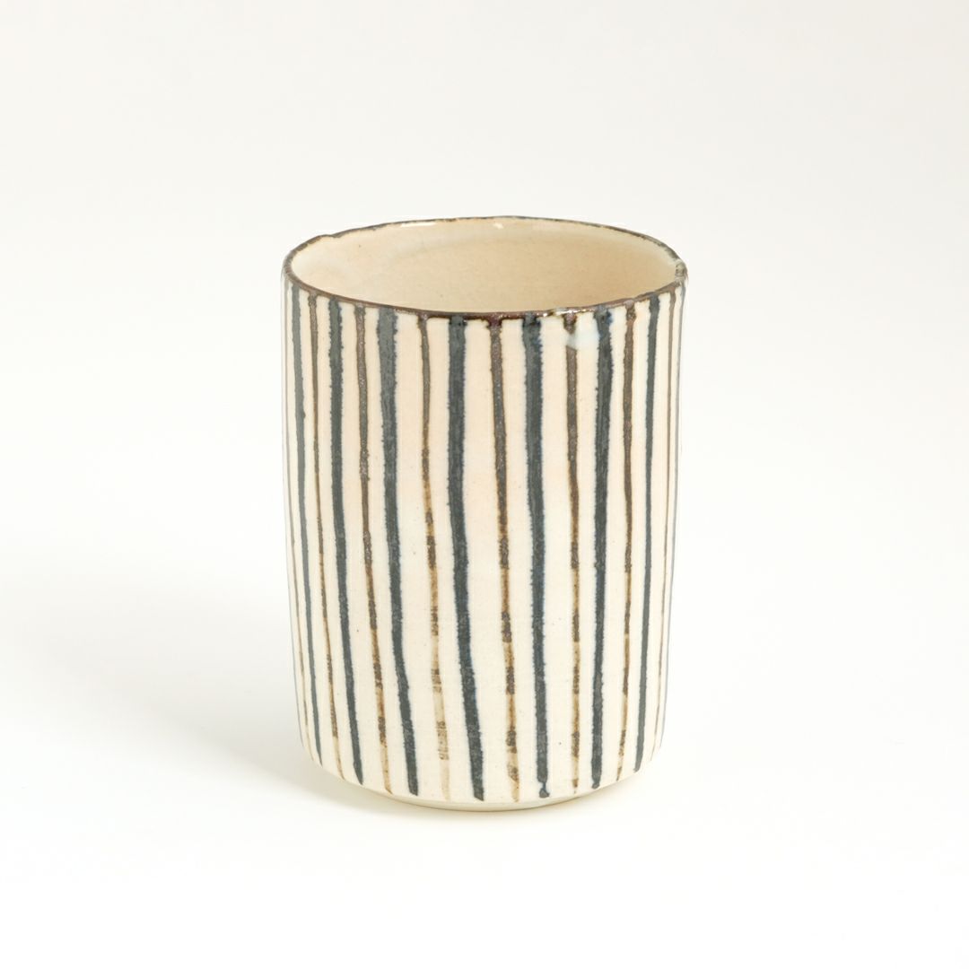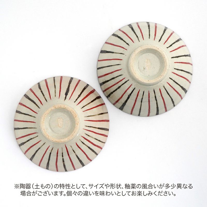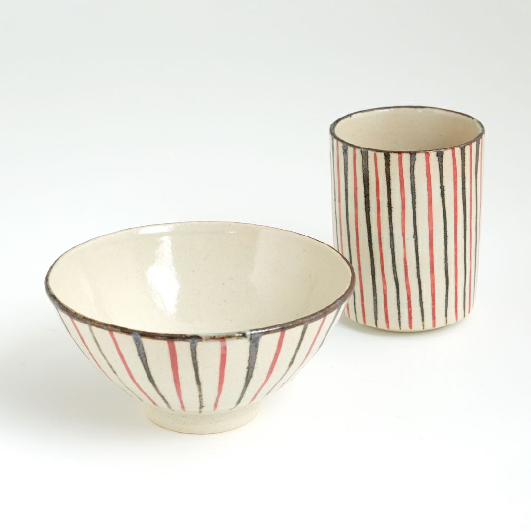 シンプルさのなかにもどこか温かみが感じられるたち吉の「浮雲シリーズ」。「緋色(ひいろ)」と呼ばれる赤味が浮き出る化粧土を使用しており、その出方は一つ一つ異なるので、やきものの面白さや個性が味わえます。