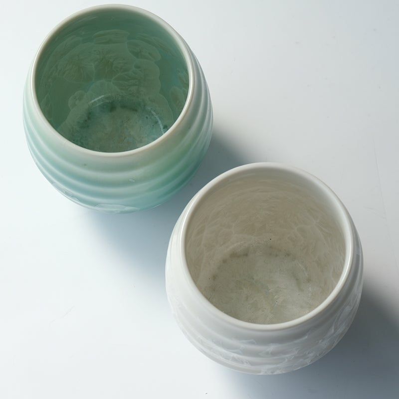背が低く口が広い形状は汲み出し茶碗とも呼ばれ、主に緑茶、煎茶を飲むのにおすすめです。特に小さいものは玉露や上級の煎茶に適しています。蓋のないすっきりとした茶碗は、ご家庭でのティータイムやおもてなしのほか、茶托を添えてビジネスのシーンでの来客用としても最適です。