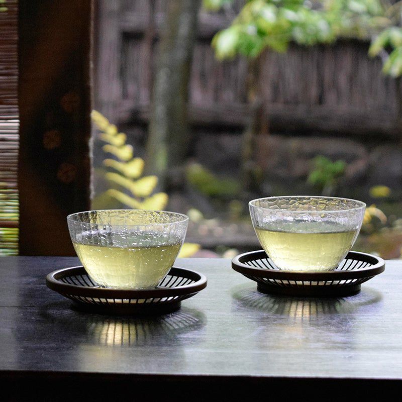 夏用の、冷たいお茶を入れるガラスの茶碗です。涼しげなガラスの冷茶碗で出す冷茶で一服の清涼を。竹製の、風情ある夏用茶托との組み合わせがおすすめです。
