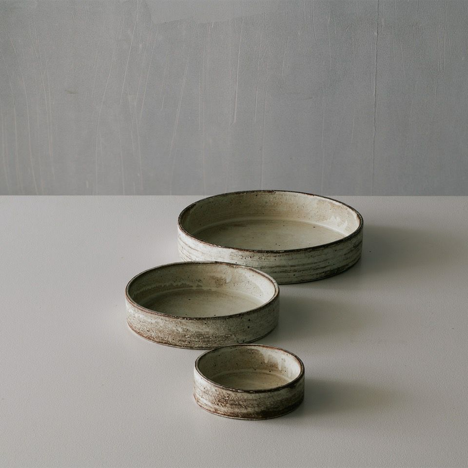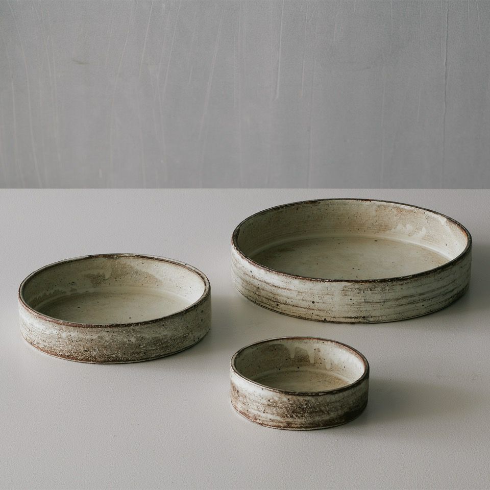 少したわませた楕円の形に、温かみが宿る粉引の器。ひとつひとつ施された線彫りが、器に独特の趣を与えています。「粉引」とは、「粉を引いたように白い」と表現されたことが由来。
