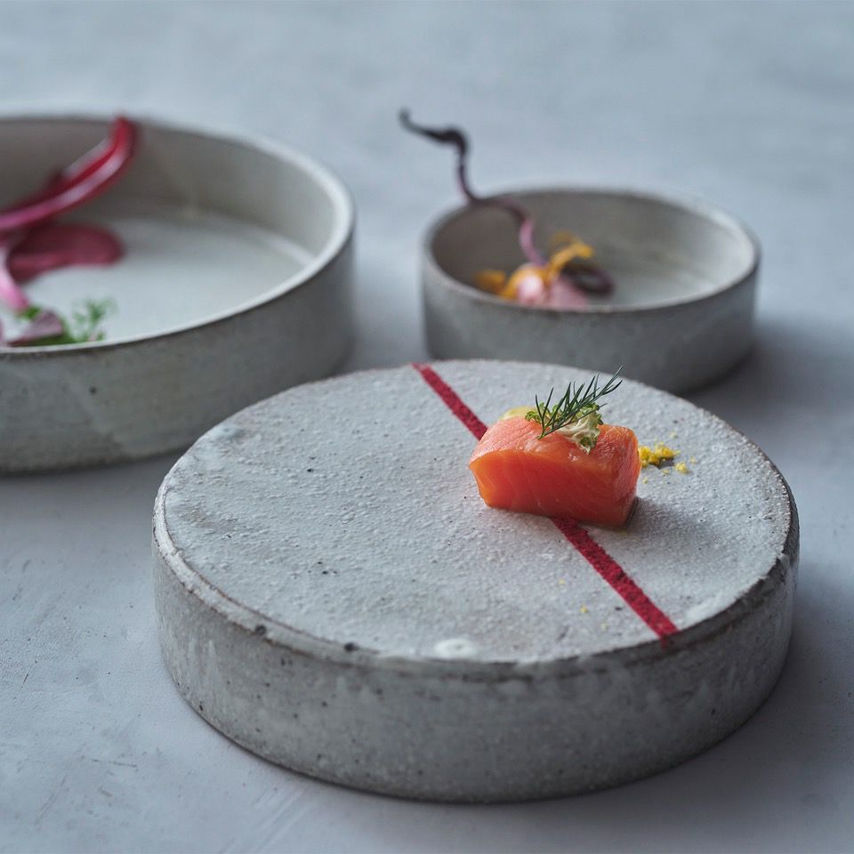 二つのパーツを組み合わせた二層構造の器のシリーズです。自然界には珍しい七角形と円形の組み合わせによるデザインは、料理を引き立て、日常の食卓に特別感をもたらします。