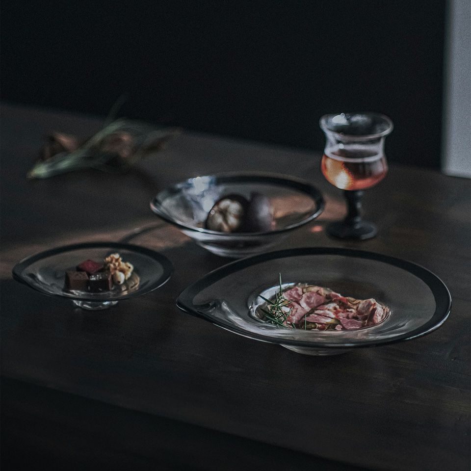 料理の盛り付けはもちろん、裏返してオブジェのように使ったり、ジュエリーや小物をのせたり、発想次第で用途は無限に広がります。