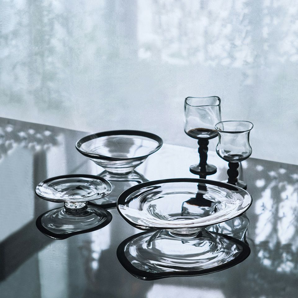 高温に熱したガラスに、吹き竿を通して息を吹き込み、かたちづくる宙吹きガラスは、ひとつとして同じものはなく、自然素材の漆は、経年により色ツヤが変化します。使う人それぞれの暮らしの中で美しく育っていく器です。