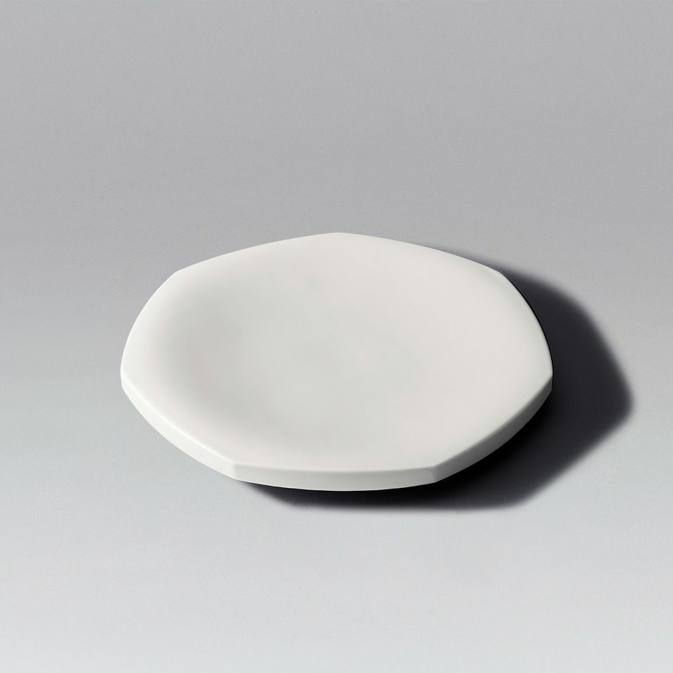 二つのパーツを組み合わせた二層構造の器のシリーズです。自然界には珍しい七角形と円形の組み合わせによるデザインは、料理を引き立て、日常の食卓に特別感をもたらします。