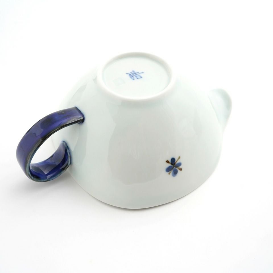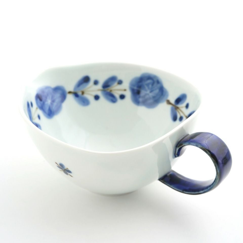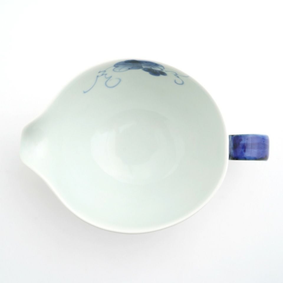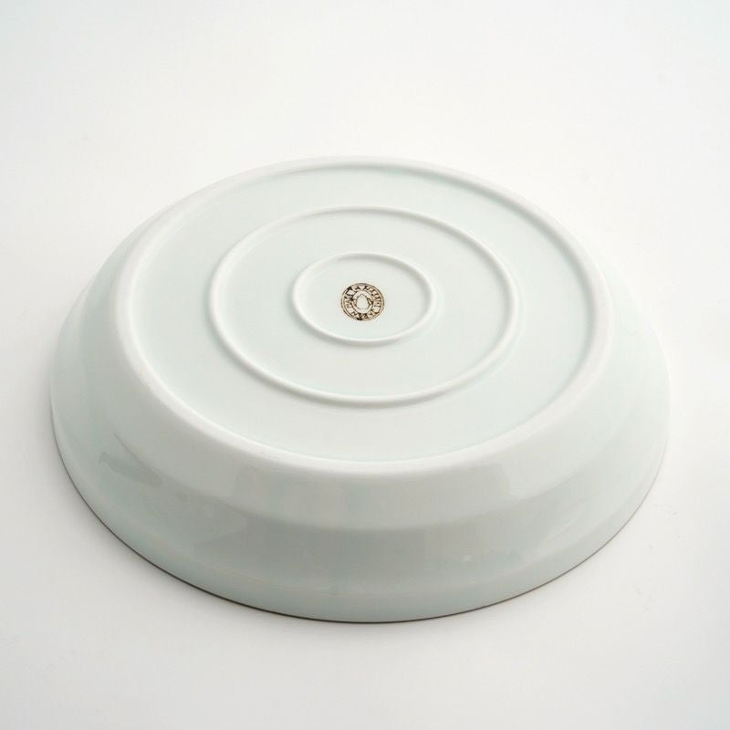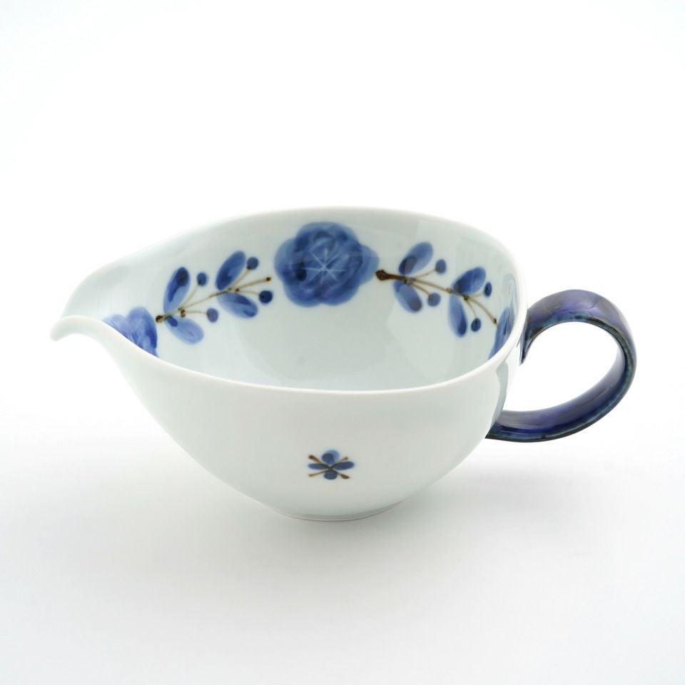 陶器ならではのやさしい白さの粉引に、藍色の染花のアクセント。粉引独特の風合いがあたたかみをもたせ、くっきりとした白と染花の藍色が食卓を明るくします。