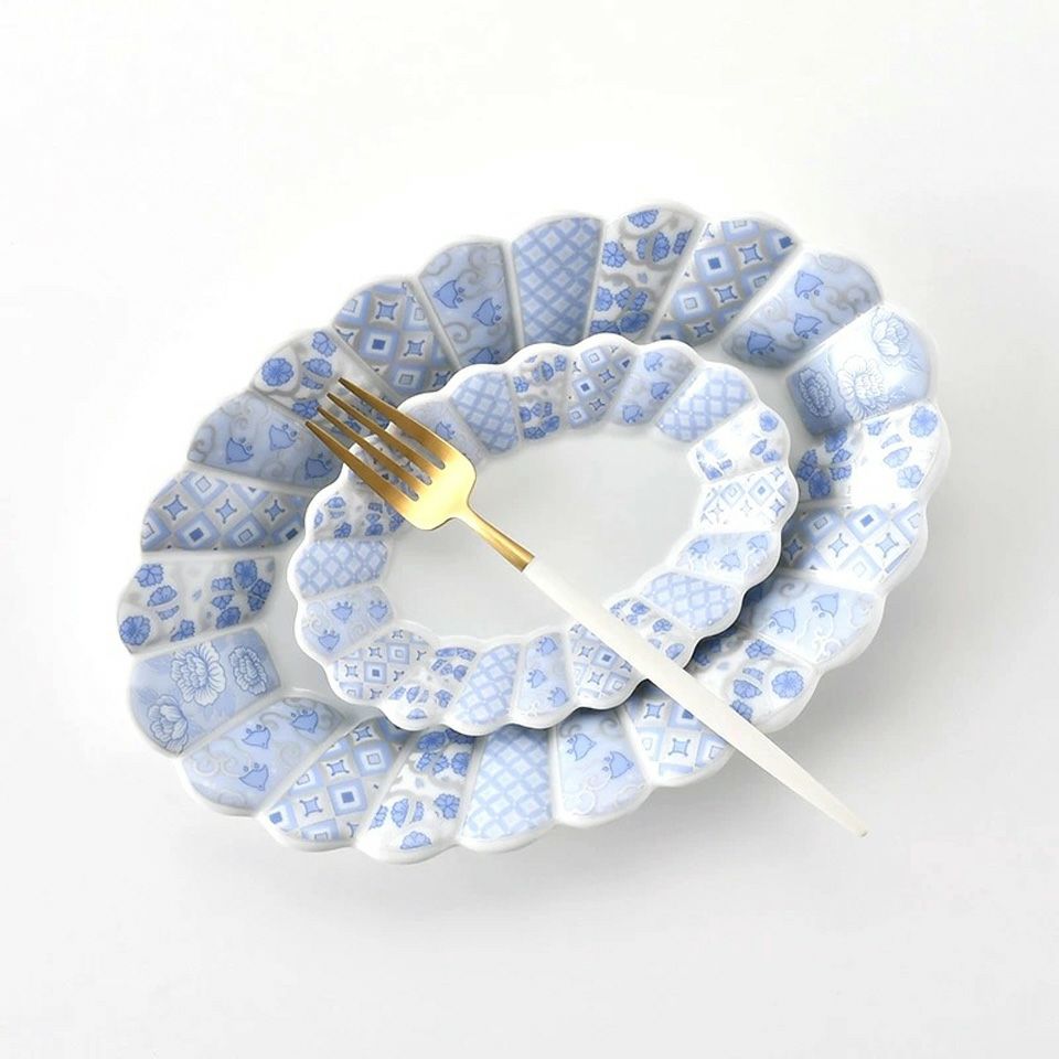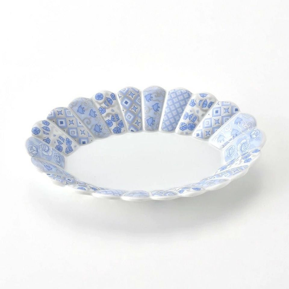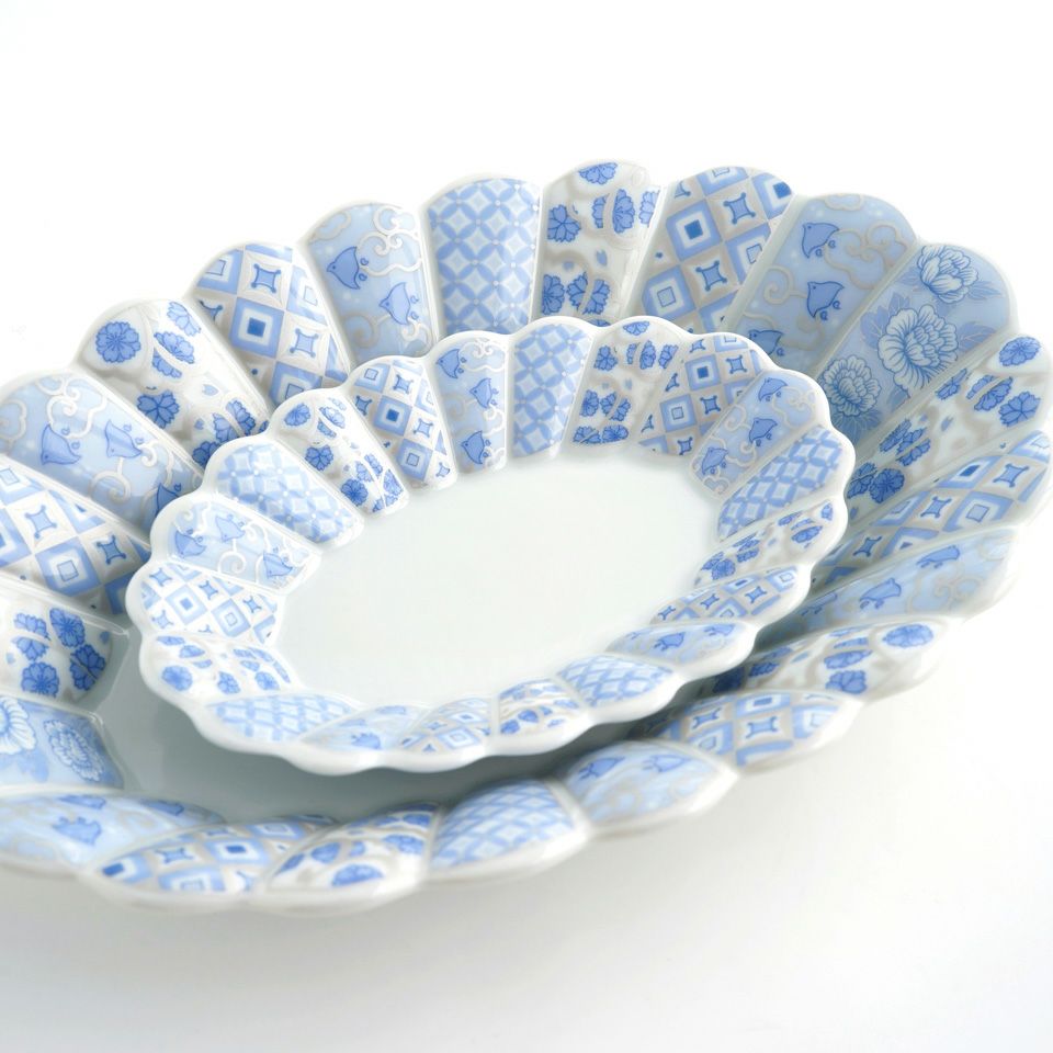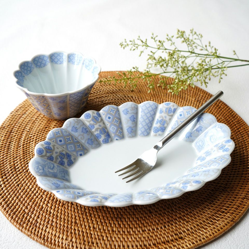 菊の花をかたどり、内外に小花柄を描いた可愛らしい器です。使い勝手がよく、華やかさを持ちながらも気取らない雰囲気です。