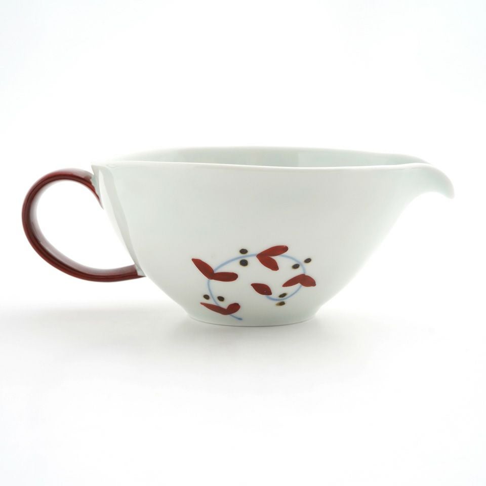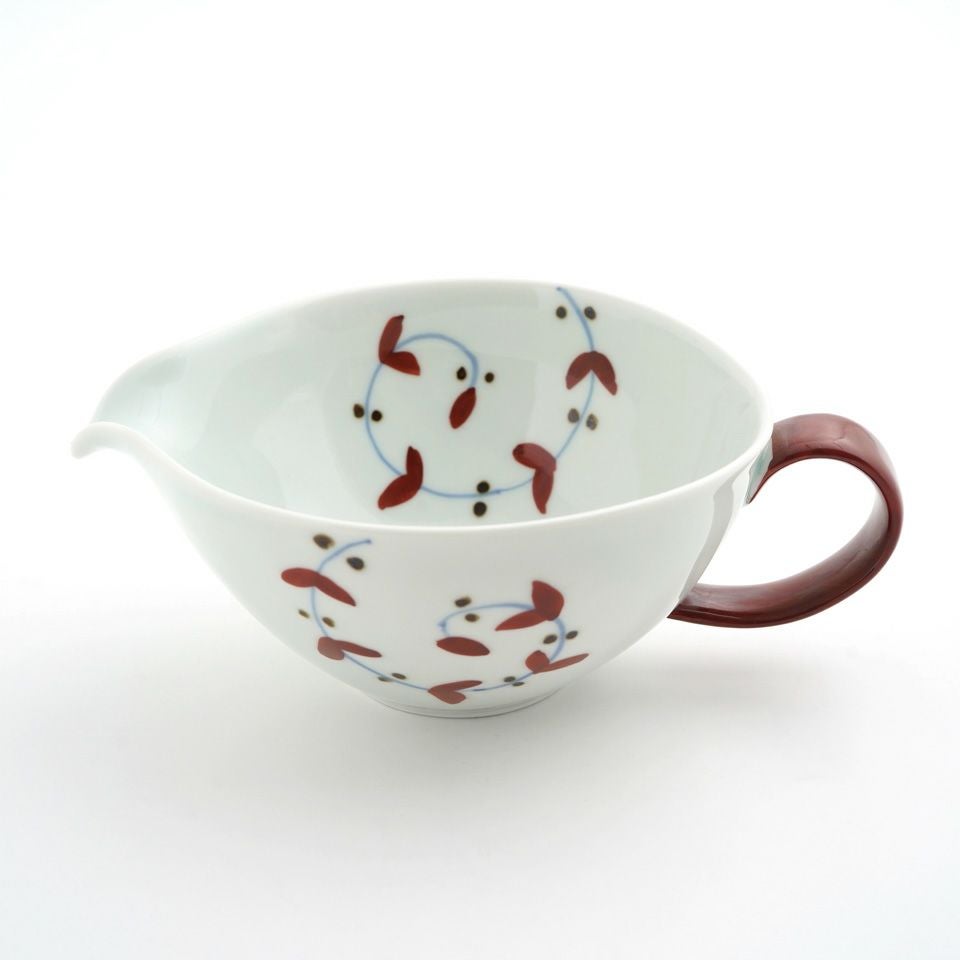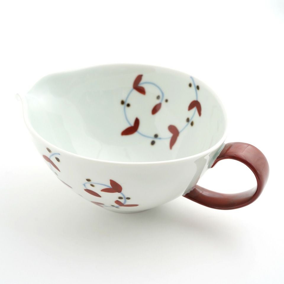 シンプルさのなかにもどこか温かみが感じられるたち吉の「浮雲シリーズ」。「緋色(ひいろ)」と呼ばれる赤味が浮き出る化粧土を使用しており、その出方は一つ一つ異なるので、やきものの面白さや個性が味わえます。