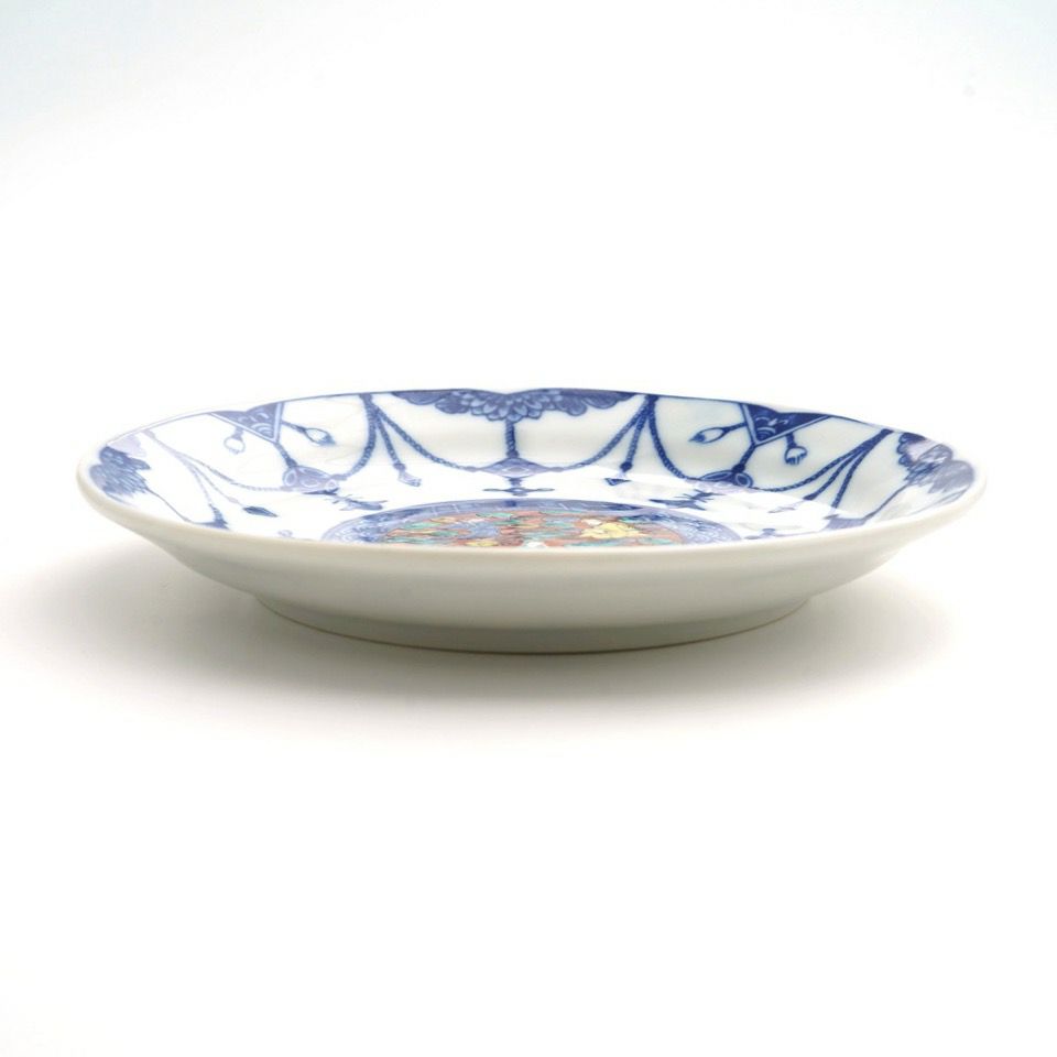 菊の花をかたどり、内外に小花柄を描いた可愛らしい器です。使い勝手がよく、華やかさを持ちながらも気取らない雰囲気です。