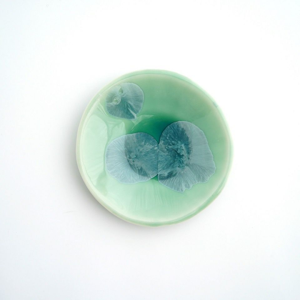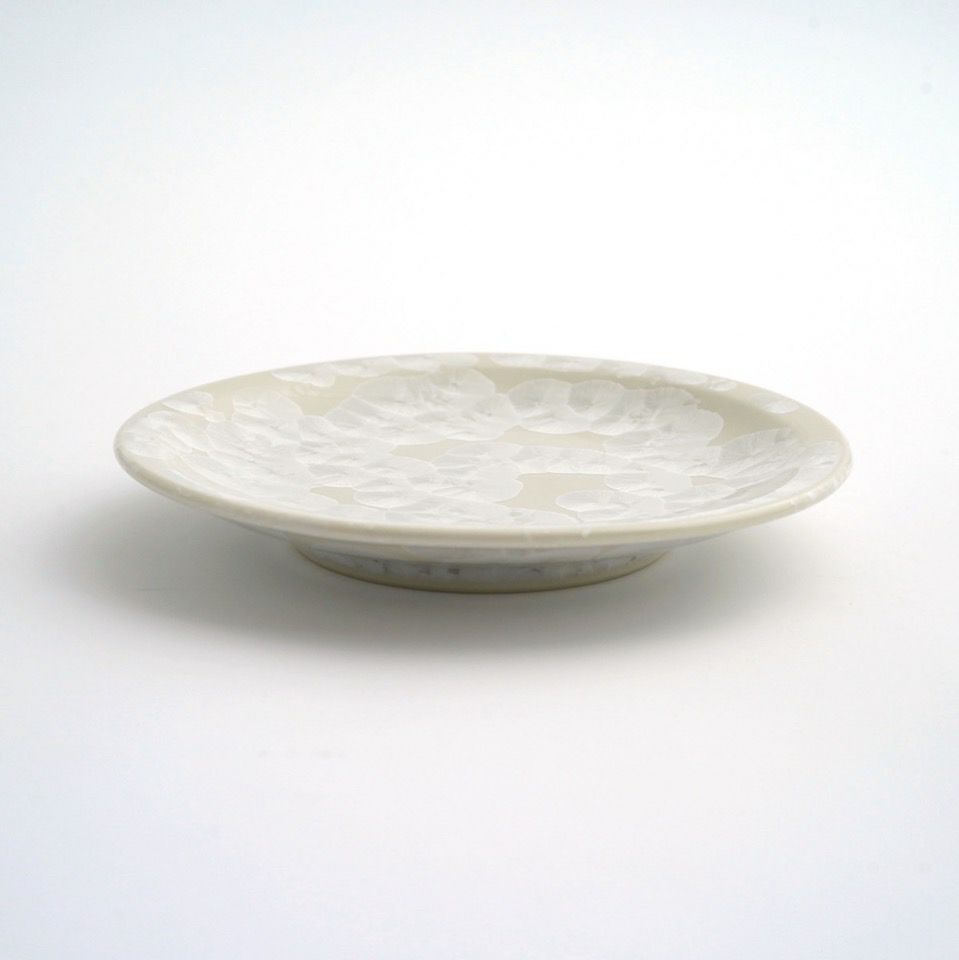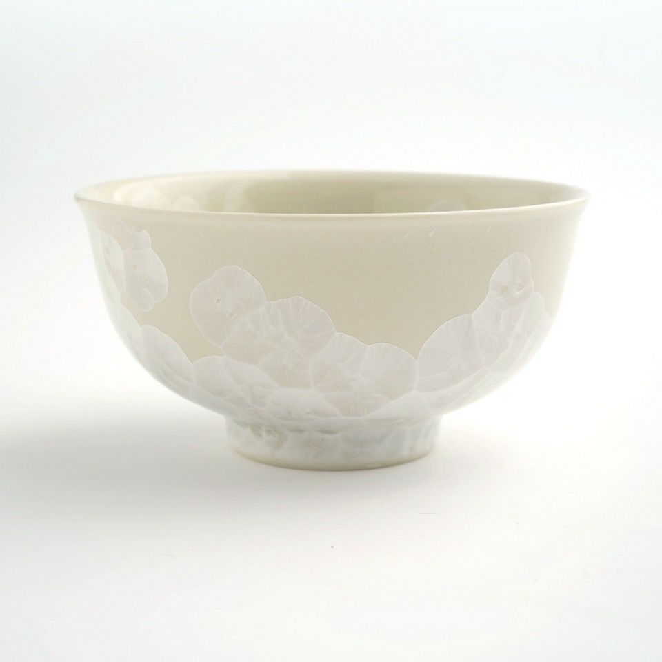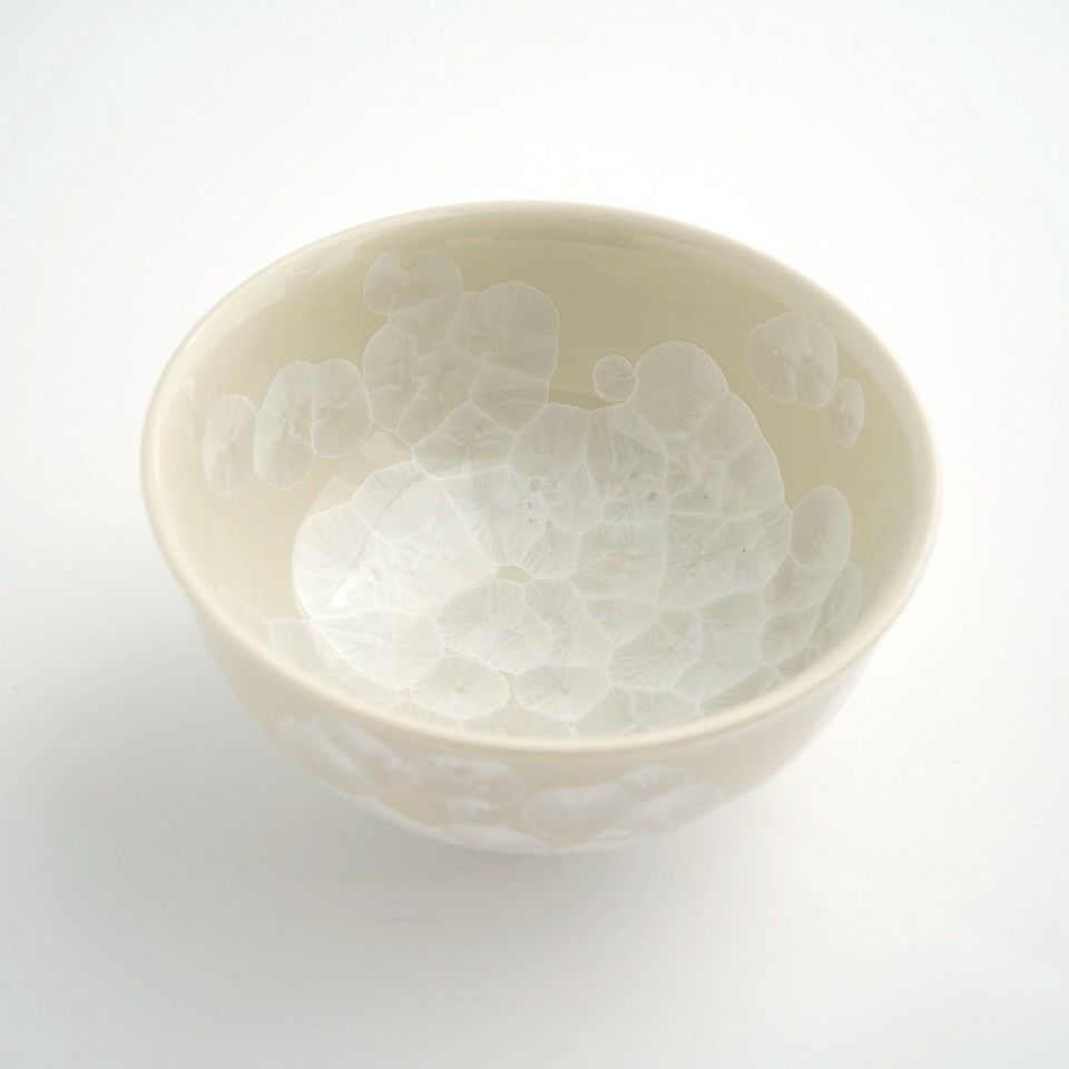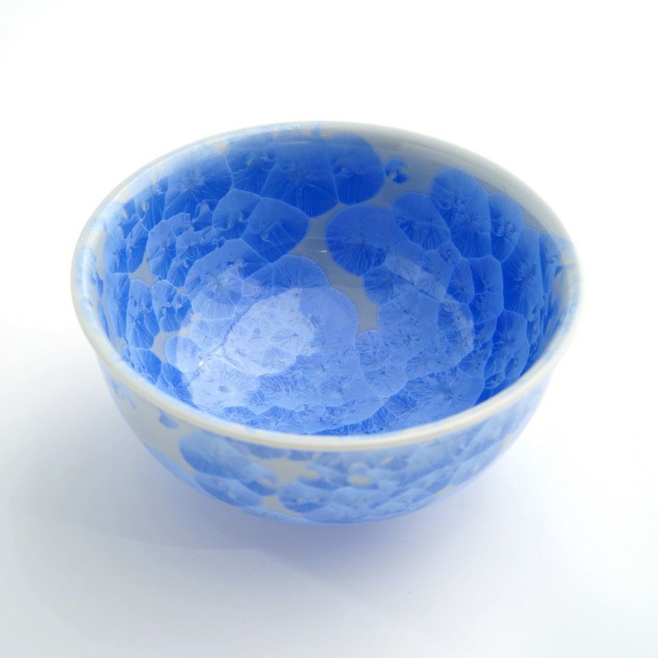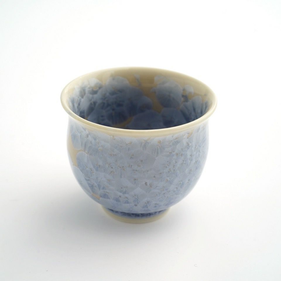 上品で華やかな結晶釉が美しい京焼・清水焼の花結晶。 結晶釉の中に含まれる成分が、冷却時に華のような文様を作り出すことで様々な表情を魅せます。 ひとつひとつ異なる結晶は二つとして同じパターンはなく、一期一会の偶然が生み出すアート。大切な人への贈りものにも喜ばれます。 透明感のある幻想的な花結晶の彩りをお楽しみください。