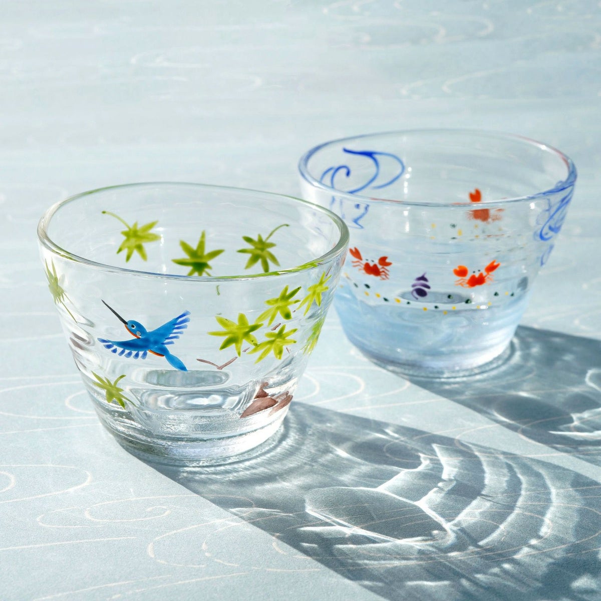 季節の風情をやさしく映した涼やかなガラスのうつわ。色絵ガラスは京焼・清水焼伝承の絵付技法を、ガラスに焼成することにより生まれた大変珍しいもので、京焼の絵付師 見谷尚音さんによる手描きです。色とりどりの絵付けは夏らしい鮮やかさと、どこか和むようなやわらかい表情をしています。 今回5つの柄が新登場しました!女性ならではの感性で描かれた手描きの絵付けをお楽しみ下さい。