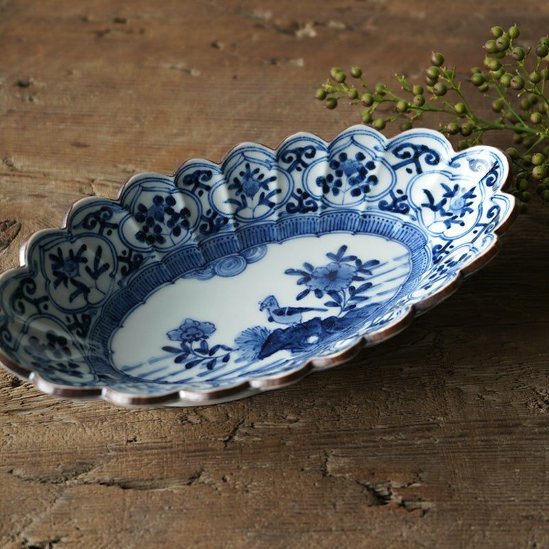 藍古九谷を現代に再現することを志し、天皇陛下即位の礼や、海外の要人たちをおもてなしにも使用されてきた作家。ロクロで挽いた素地を型に被せ素地に形を写す型打ち技法を使用。
