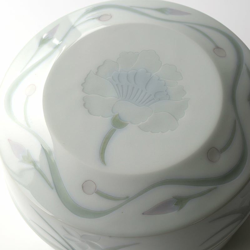 日本画のように描かれる繊細な絵付けは丁寧で細やか。そこに優しい色が加わることで、ふんわりと可愛い雰囲気が表現されています。