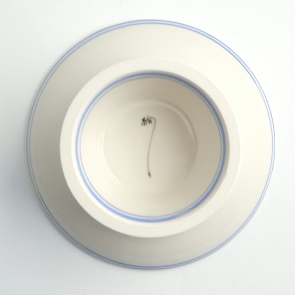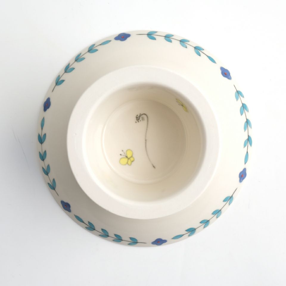 藍古九谷を現代に再現することを志し、天皇陛下即位の礼や、海外の要人たちをおもてなしにも使用されてきた作家。ロクロで挽いた素地を型に被せ素地に形を写す型打ち技法を使用。