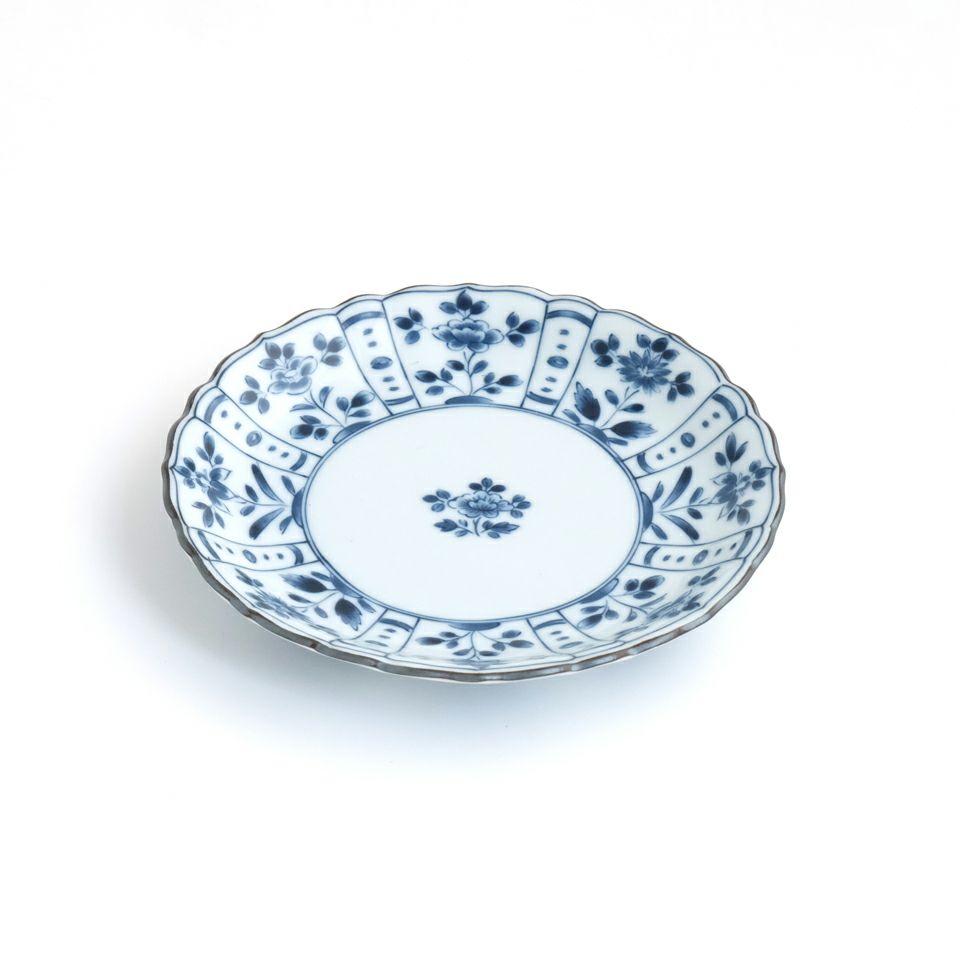 皿の表と裏に柄があり、両面から目で楽しめて良いです。色あいは落ち着いているので、お料理や他の食器との馴染みも良いと思います。表面はつるりとしていてお手入れも簡単です。