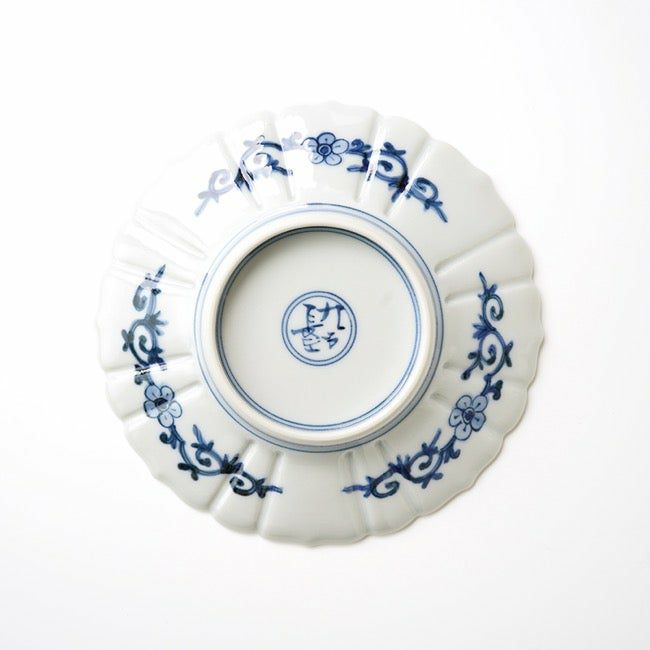 菊の花をかたどり、内外に小花柄を描いた可愛らしい器です。使い勝手がよく、華やかさを持ちながらも気取らない雰囲気です。